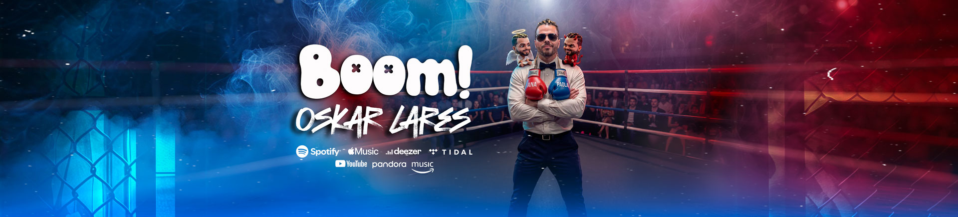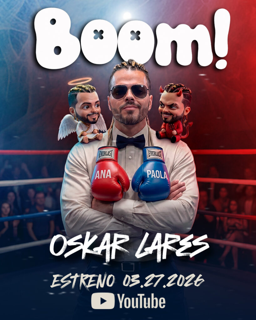 “Boom!” es una historia narrada con humor y picardía sobre el choque de dos mujeres con personalidades opuestas: Ana, intelectual y sofisticada, frente a Paola, irreverente, seductora y apasionada. Con una narrativa teatral, ambientada como un combate boxeo, la canción retrata el dilema emocional de un protagonista atrapado entre la razón y el deseo.